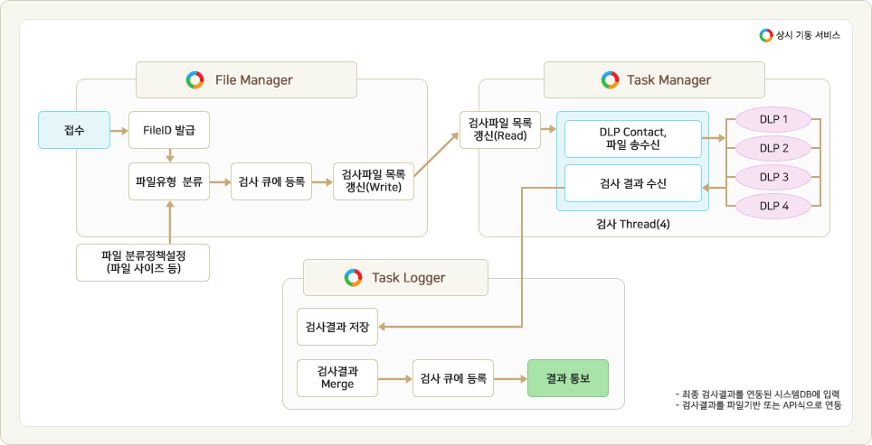 고속처리 기술 | 탐지엔진을 분산해서 탐지 효율 증대 | 분산처리 미지원 | |